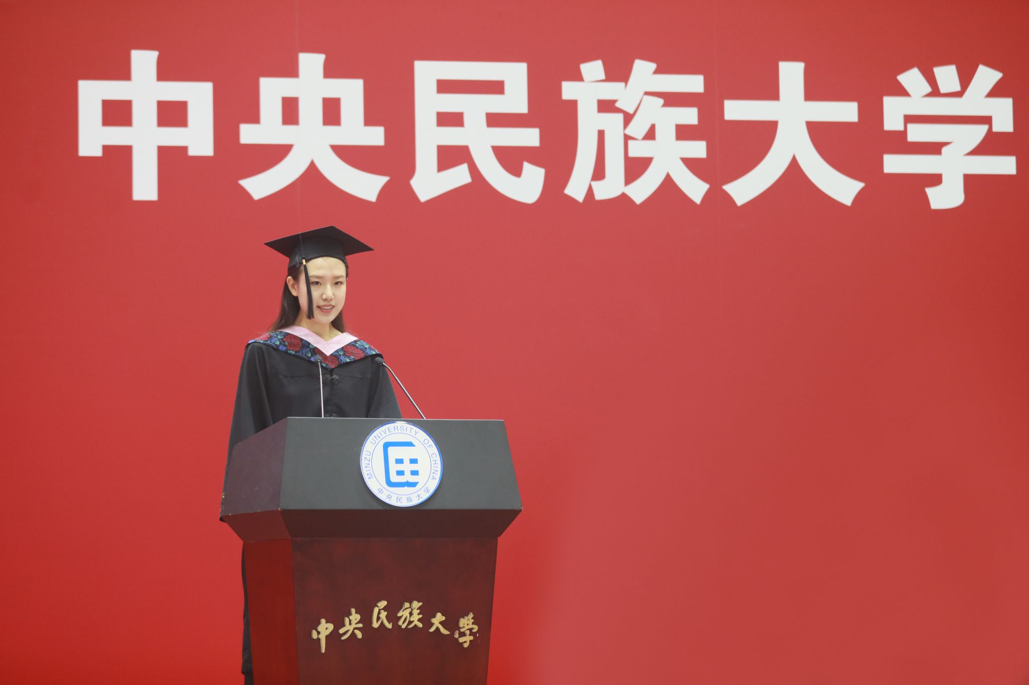 本科生毕业生代表、管理学院吴励言同学忆起开学典礼上校长“心中有国家、胸中有理想、肩上有担当、身上有本领”的寄语,认为民大四年是最美好的青春,见证了盛世,与时代共进。